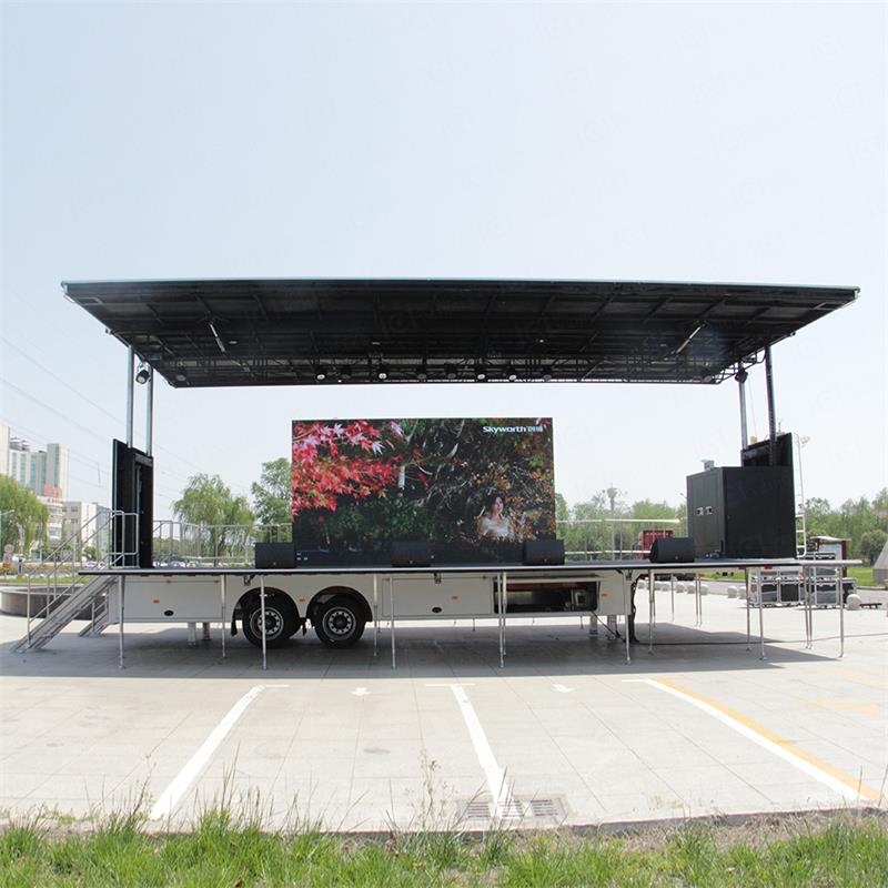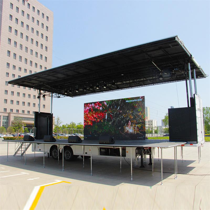 The bottom of the stage car is equipped with 4 hydraulic legs, which can easily open the hydraulic legs by operating the hydraulic remote control and lift the whole vehicle to the horizontal state. This design ensures the stability and safety of the vehicle, so that the stage performance is more secure and smooth.