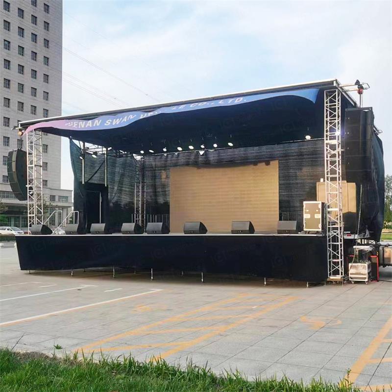 The two sides of the fender can not only be turned up hydraulic open, but also equipped with a spliced wing aluminum alloy truss, which not only enhances the stability and bearing capacity of the fender, but also increases the beauty and appreciation of the stage.