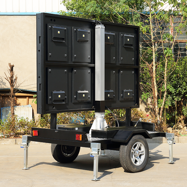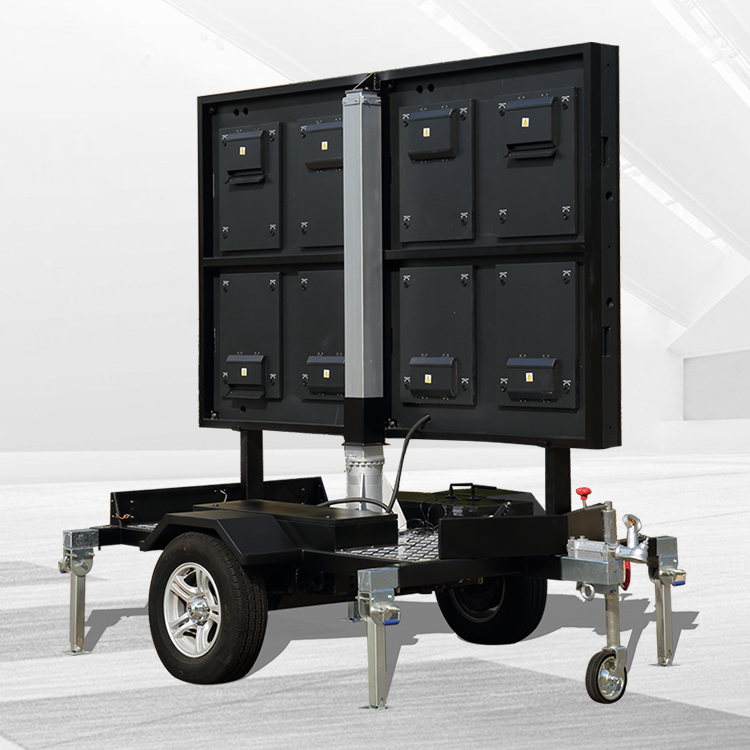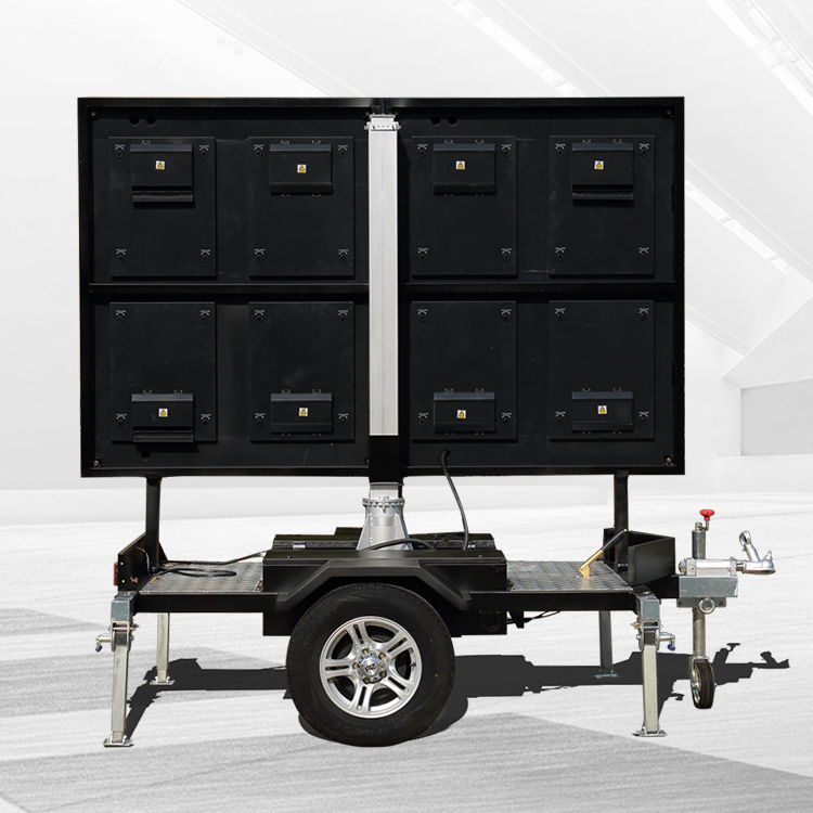4㎡mobile led trailer equipped with inertial device and hand brake, using the car can be towed to move, where more people to which broadcast and publicity, where to think of;Choose the mechanical structure of manual support legs, easy and fast operation;
