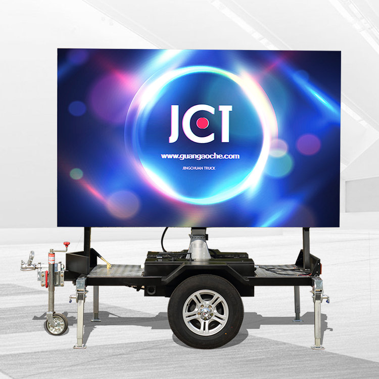 4㎡mobile led trailer integration support, and the functions of hydraulic lifting, rotating system, JingChuan company self-developed rotating guide pin can realize LED visual range 360 ° no dead Angle, further enhance communication effect, and is especially suitable for city, assembly, crowded occasion applications such as outdoor sports field.