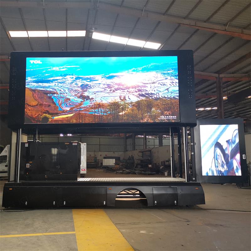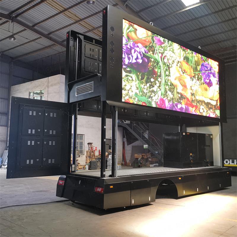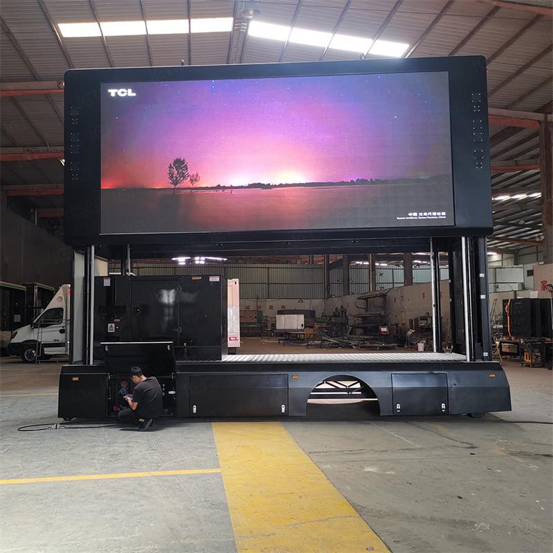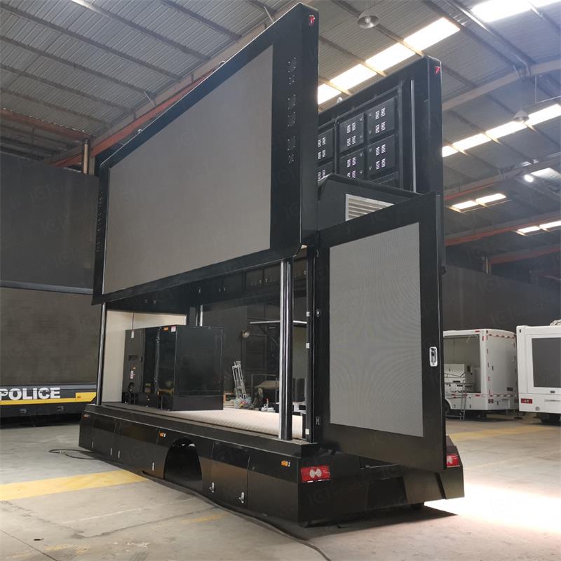 Fully Automatic Hydraulic Stage: Model 4800 LED truck body can be equipped with optional fully automatic hydraulic stage, which can be quickly unfolded into a mobile stage truck to provide convenience for the event site.