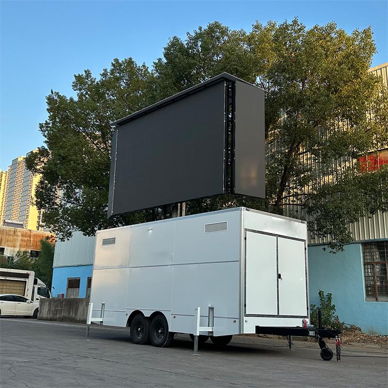 The Mobile LED Trailer (Model: MBD-21S) created by JCT is designed with a one-button remote control for customer convenience. Customer simply gently presses the start button, The roof of the closed box connected to the LED screen will automatically rise and fall up, The screen will automatically rotate the lock screen after rising to the height set by the program, Lock up another large LED screen below, Hydraulic drive upward rise; After the screen rises to the specified height, The left and right folded screens can be expanded, Turn the screen into a large overall size of 7000x3000mm, Bring the audience a super-shocking visual experience, Greatly enhance the publicity effect of businesses; LED screen can also be operated hydraulically 360degree rotation, Regardless of where the Mobile LED Trailer is parked, Can adjust the height and rotation angle by remote control, Put it in the optimal visual position. This one-button remote control button operation, all hydraulic devices are safe and reliable operation, the structure is durable, no need for the user to carry out other dangerous manual operation, only 15 minutes, the whole Mobile LED Trailer can be put into use, so that can save users time and no worries.