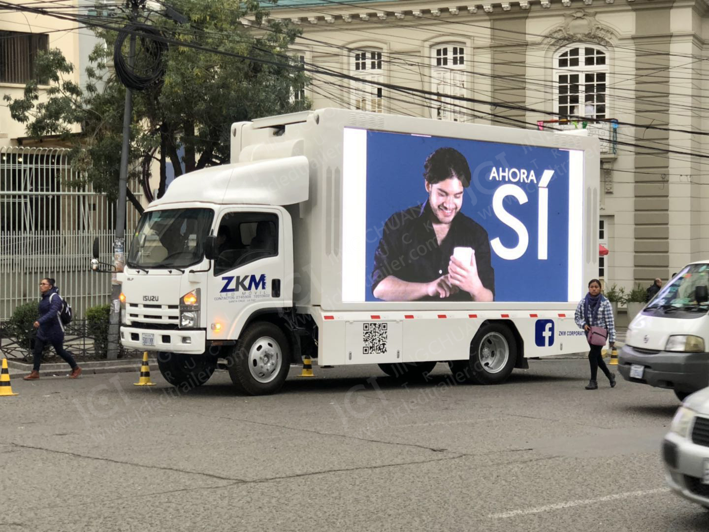 This is EW3815, the type of mobile LED truck with three-sided screen and lifting system. Customer from Bolivia is very satisfied with the display effect of this mobile LED truck. The three-sided screen design offers the better advertising effect and lifting system makes the distance of advertising farther. People can see the content on the big screen from far away. Different from mobile LED trailer, the truck body can accommodate people at the same time. According to customer’s needs, JCT recommends the most suitable mobile LED trailer. Please do not hesitate to contact with us for more detail information.
