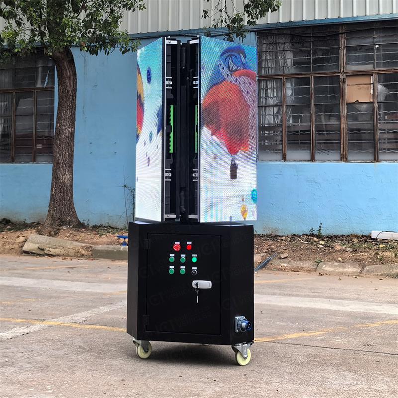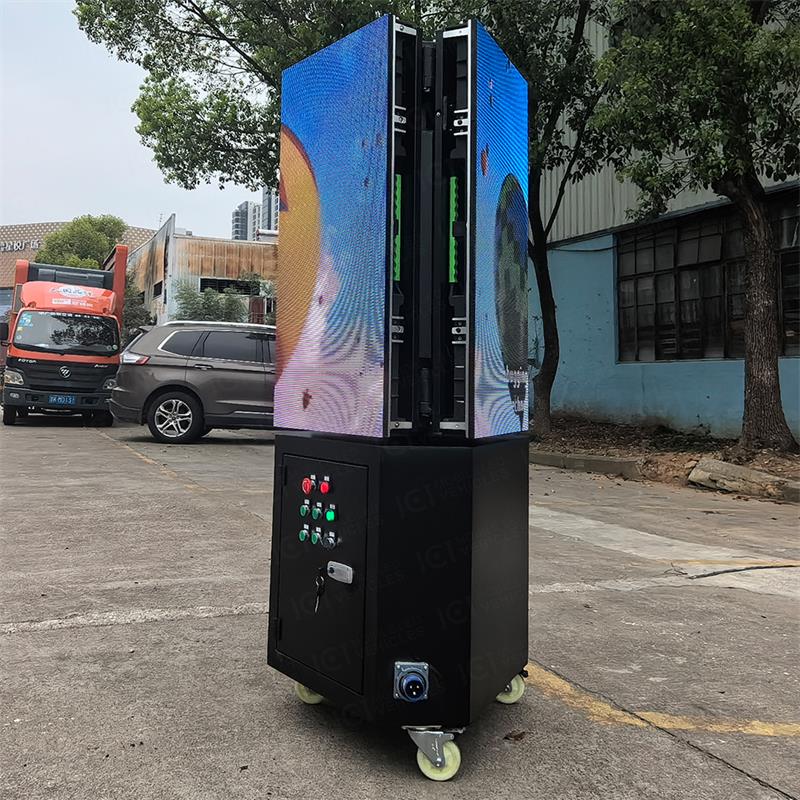Overall, JCT CRS150 creative rotating screen is a highlight of outdoor advertising, business display and cultural performance activities, with its unique design and excellent visual effects. Its flexible mobile carrier and multi-faceted screen combination design brings more choices and possibilities for users. Whether outdoors or indoors, whether during the day or night, CRS150 can bring stunning visual enjoyment to the audience and become an indispensable part of the scene.