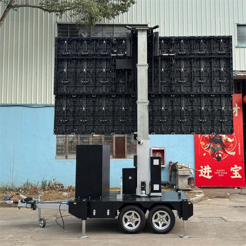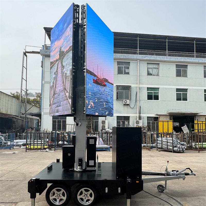 This product also has hydraulic lifting function, with a lifting stroke of 2400mm. Through precise control of the hydraulic system, the screen can be easily adjusted to the optimal viewing height, ensuring that the audience receives the best visual effects whether it is ground activities or high-altitude displays. At large-scale event venues, raising the screen to a suitable height can effectively avoid crowd obstruction, allowing every audience member to clearly enjoy the exciting content on the screen; In some specific display occasions, such as building exterior walls or elevated bridges, raising the screen can make it more eye-catching, become a visual focus, and attract the attention of passing pedestrians and vehicles.