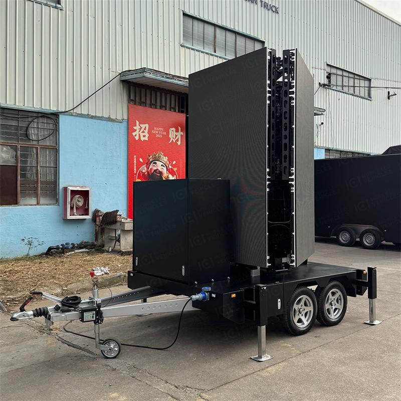 One of the biggest highlights of this LED mobile creative rotating screen trailer is that it can adjust the size of the LED display screen at any time by increasing or decreasing the number of detachable LED modules according to customer needs. The LED screen size can be selected from 12-20 sqm, and this flexible expandability allows it to adapt to various activities of different sizes and types. For small-scale commercial promotion activities, smaller screen sizes can be chosen to accurately attract target customer groups; For large-scale outdoor concerts, sports events, or commercial celebrations, it can be expanded to larger screen sizes, bringing a stunning visual feast to tens of thousands of spectators on-site. The adjustability of this size not only improves the versatility of the equipment, but also provides customers with more personalized and customized solutions to meet the diverse requirements of different budgets and needs.