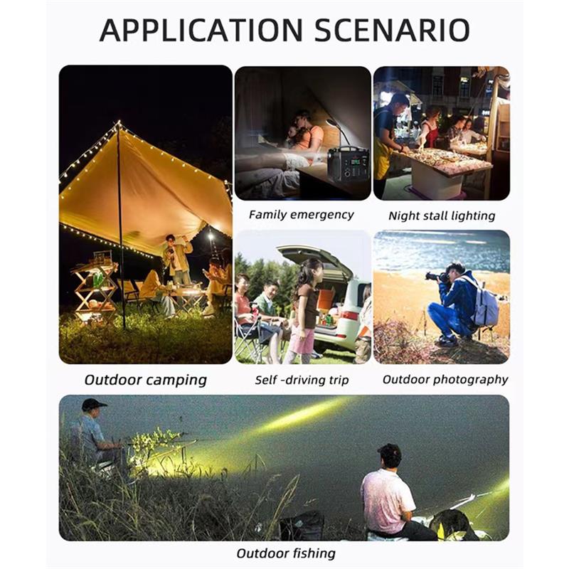 Our portable outdoor power stations are designed to be flexible and suitable for a variety of application scenarios. Whether you need home emergency power, night stall lighting, outdoor camping, self-driving travel, outdoor photography or outdoor fishing, our power station can meet your needs. With its compact and portable design, you can easily take it with you wherever you go, ensuring you always have reliable power at your fingertips.